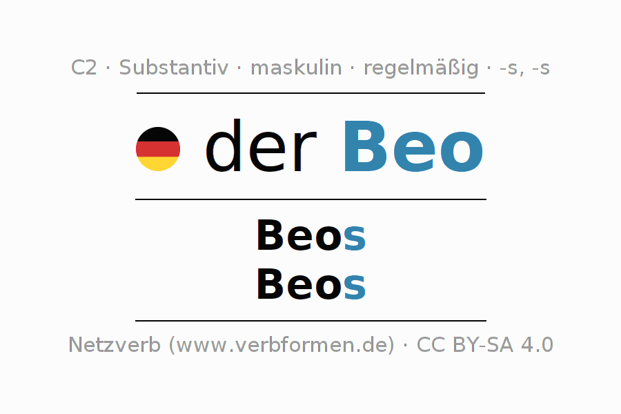 - Plural: die Beos, der Beos, den Beos, die Beos