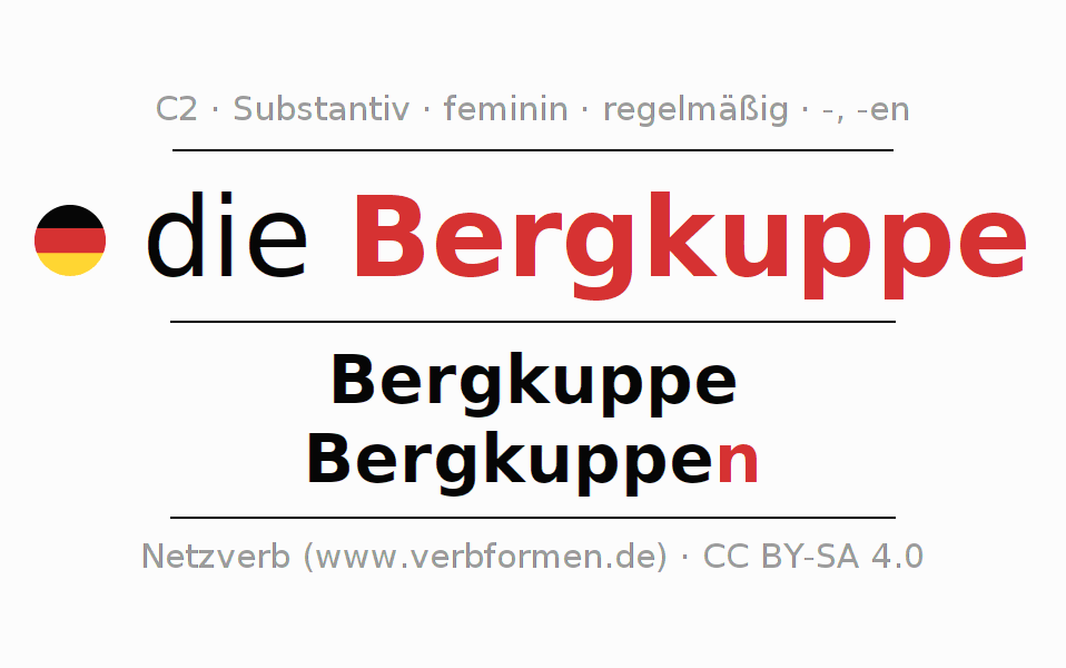 - Singular: die Bergkuppe, der Bergkuppe, der Bergkuppe, die Bergkuppe