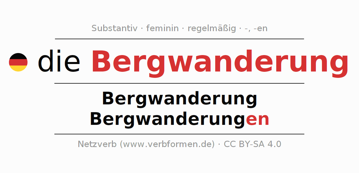 - Singular: die Bergwanderung, der Bergwanderung, der Bergwanderung, die Bergwanderung