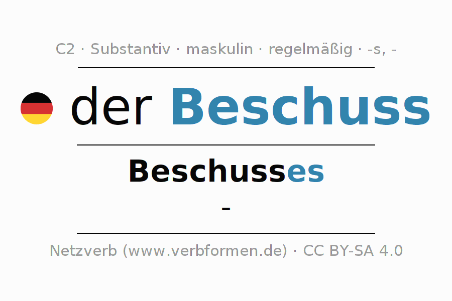 - Singular: der Beschuss, des Beschusses, dem Beschuss(e), den Beschuss