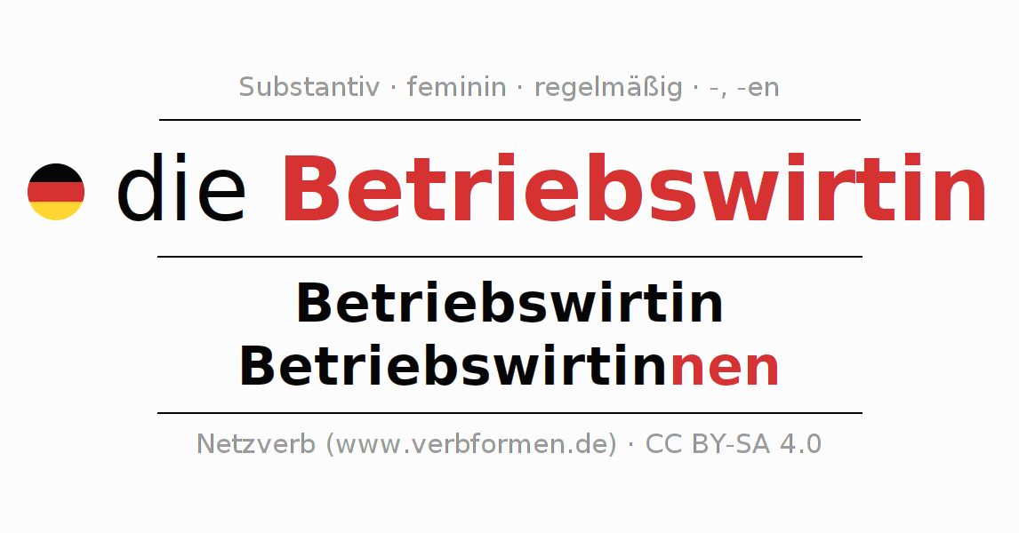 - Singular: die Betriebswirtin, der Betriebswirtin, der Betriebswirtin, die Betriebswirtin