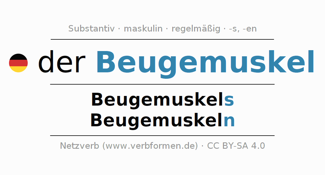 - Singular: der Beugemuskel, des Beugemuskels, dem Beugemuskel, den Beugemuskel