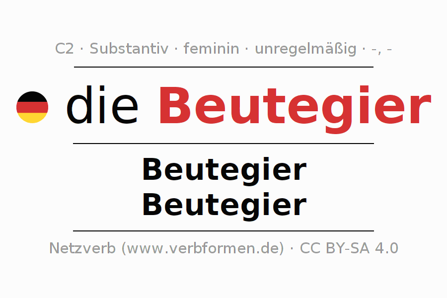 Deklination des Substantivs Beutegier mit Plural und Artikel