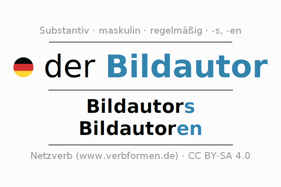 - Singular: der Bildautor, des Bildautors, dem Bildautor, den Bildautor
