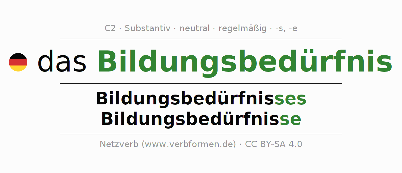 | Nom. | das Bildungsbedürfnis | die Bildungsbedürfnisse |