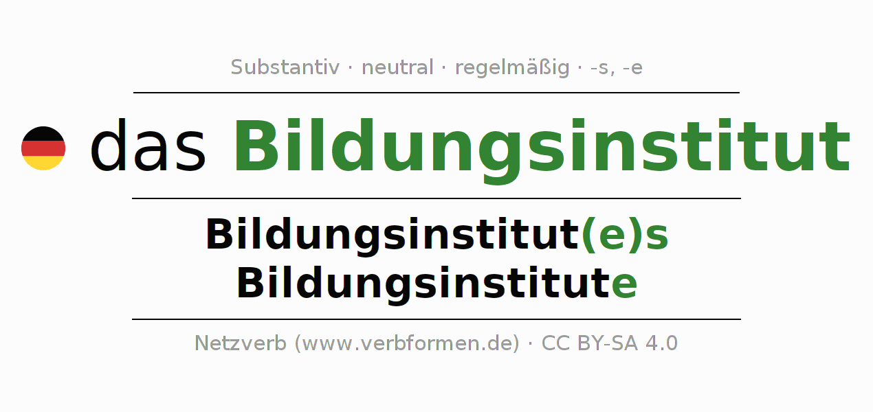 | Akk. | das Bildungsinstitut | die Bildungsinstitute |