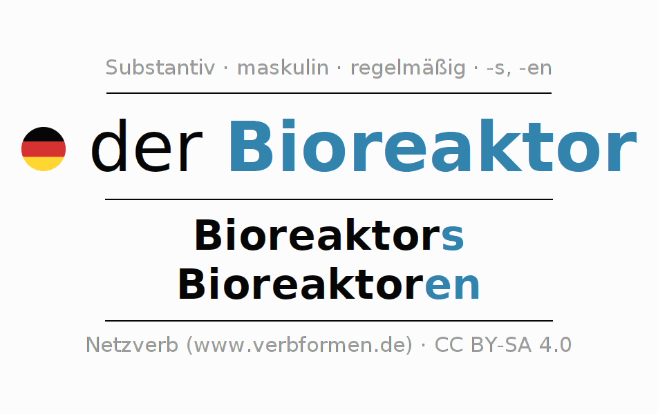 - Singular: der Bioreaktor, des Bioreaktors, dem Bioreaktor, den Bioreaktor