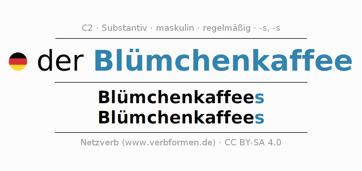 | Nom. | der Blümchenkaffee | die Blümchenkaffees |