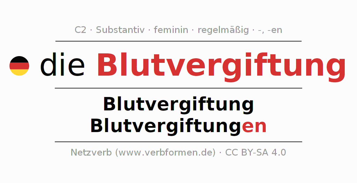 - Singular: die Blutvergiftung, der Blutvergiftung, der Blutvergiftung, die Blutvergiftung