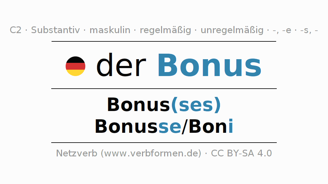 - Singular: der Bonus, des Bonus(ses), dem Bonus, den Bonus