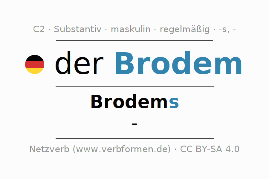 - Singular: der Brodem, des Brodems, dem Brodem, den Brodem