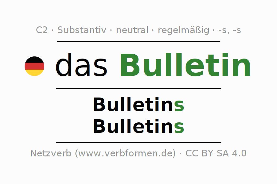 - Plural: die Bulletins, der Bulletins, den Bulletins, die Bulletins