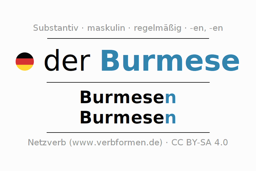 - Plural: die Burmesen, der Burmesen, den Burmesen, die Burmesen