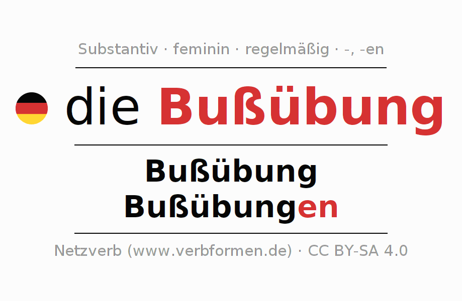 - Singular: die Bußübung, der Bußübung, der Bußübung, die Bußübung