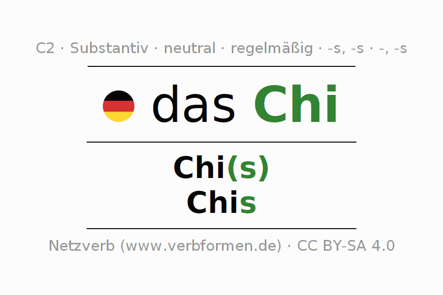 - Singular: das Chi, des Chi(s), dem Chi, das Chi