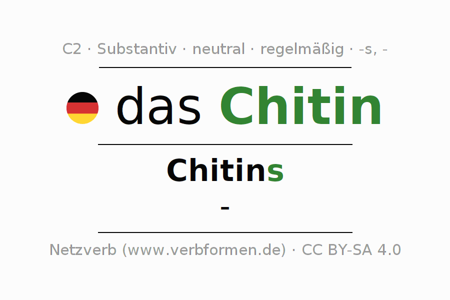 - Singular: das Chitin, des Chitins, dem Chitin, das Chitin