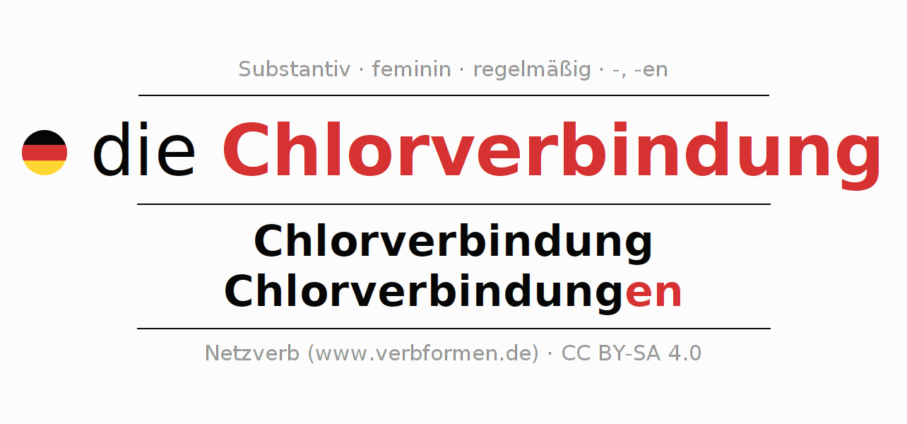 - Singular: die Chlorverbindung, der Chlorverbindung, der Chlorverbindung, die Chlorverbindung