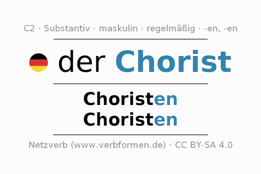 - Singular: der Chorist, des Choristen, dem Choristen, den Choristen