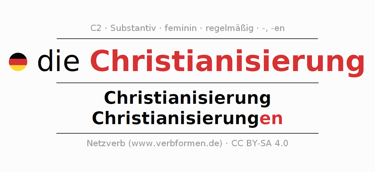 - Singular: die Christianisierung, der Christianisierung, der Christianisierung, die Christianisierung
