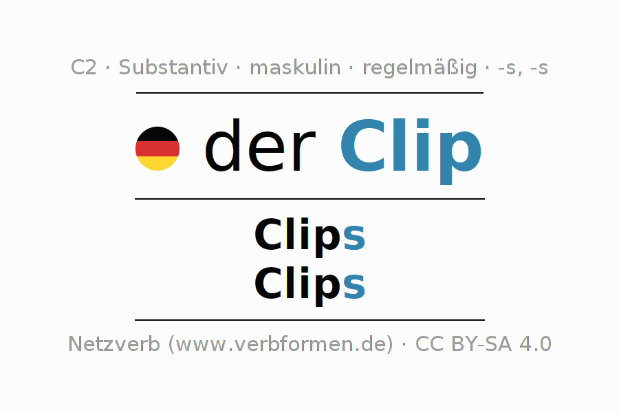 - Plural: die Clips, der Clips, den Clips, die Clips