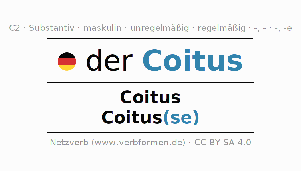 - Singular: der Coitus, des Coitus, dem Coitus, den Coitus