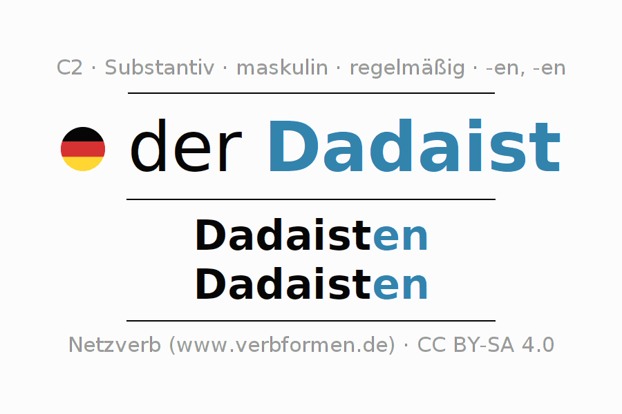 - Plural: die Dadaisten, der Dadaisten, den Dadaisten, die Dadaisten