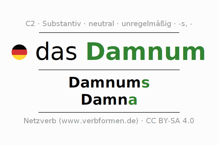 - Singular: das Damnum, des Damnums, dem Damnum, das Damnum
