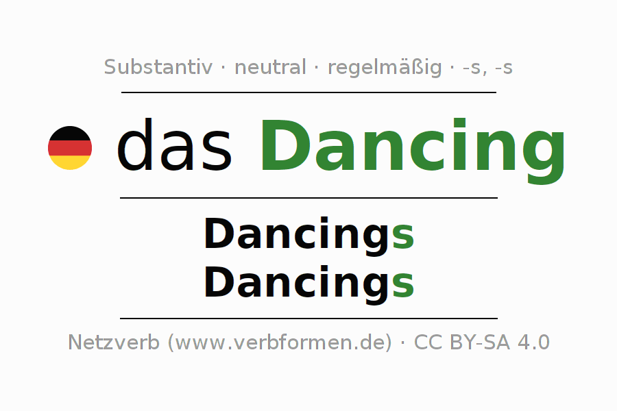- Plural: die Dancings, der Dancings, den Dancings, die Dancings