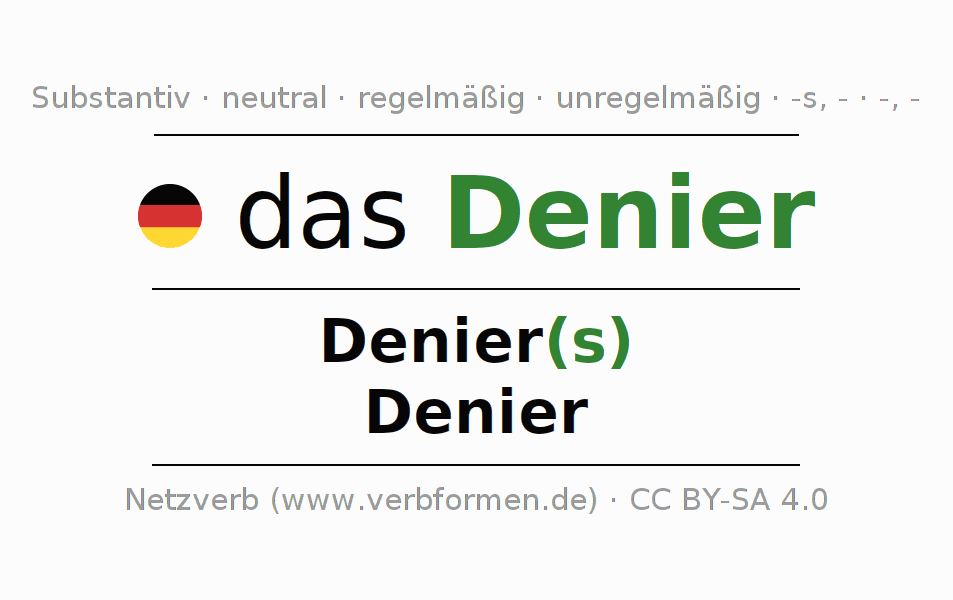 - Singular: das Denier, des Denier(s), dem Denier, das Denier