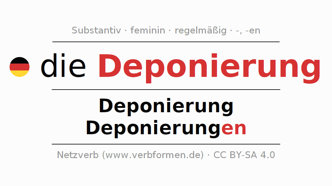 - Singular: die Deponierung, der Deponierung, der Deponierung, die Deponierung