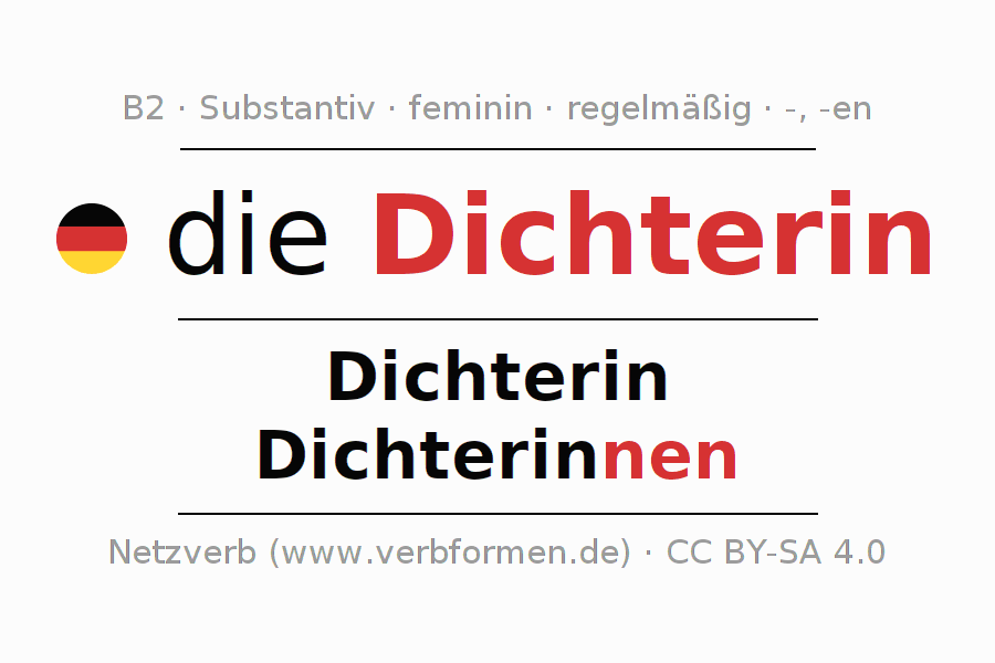 - Plural: die Dichterinnen, der Dichterinnen, den Dichterinnen, die Dichterinnen