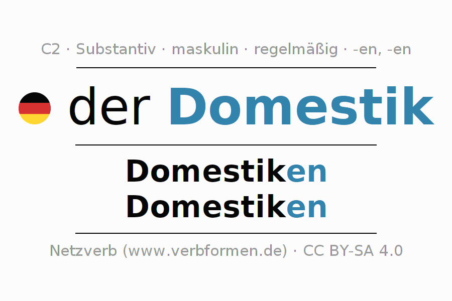 - Plural: die Domestiken, der Domestiken, den Domestiken, die Domestiken
