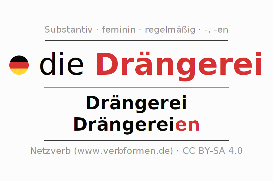 - Singular: die Drängerei, der Drängerei, der Drängerei, die Drängerei
