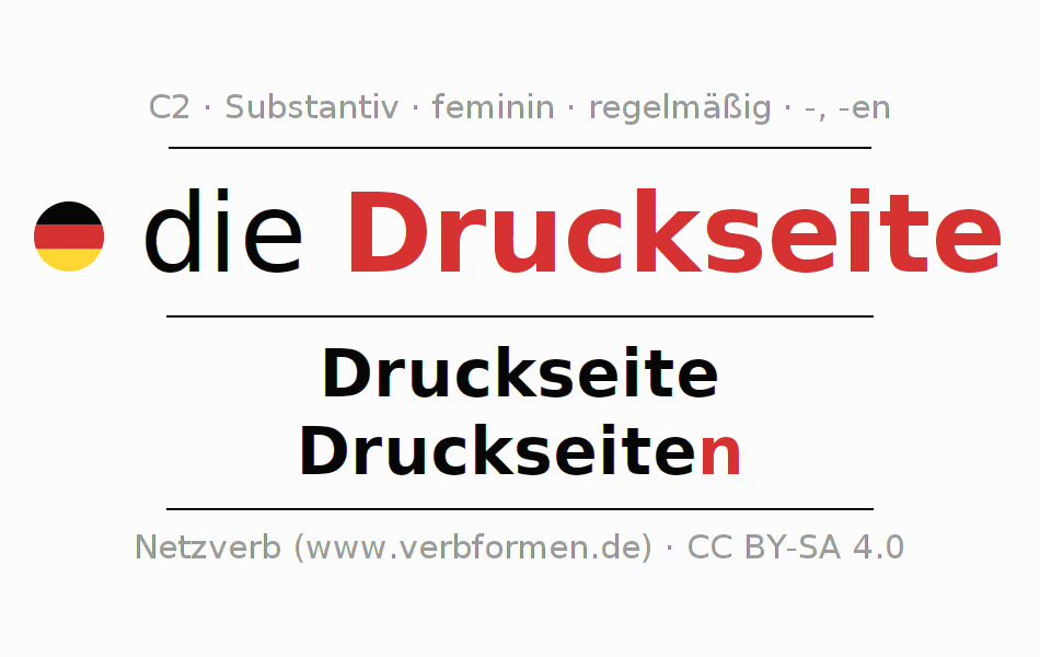 - Plural: die Druckseiten, der Druckseiten, den Druckseiten, die Druckseiten