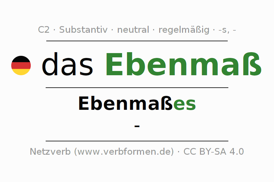 - Singular: das Ebenmaß, des Ebenmaßes, dem Ebenmaß(e), das Ebenmaß