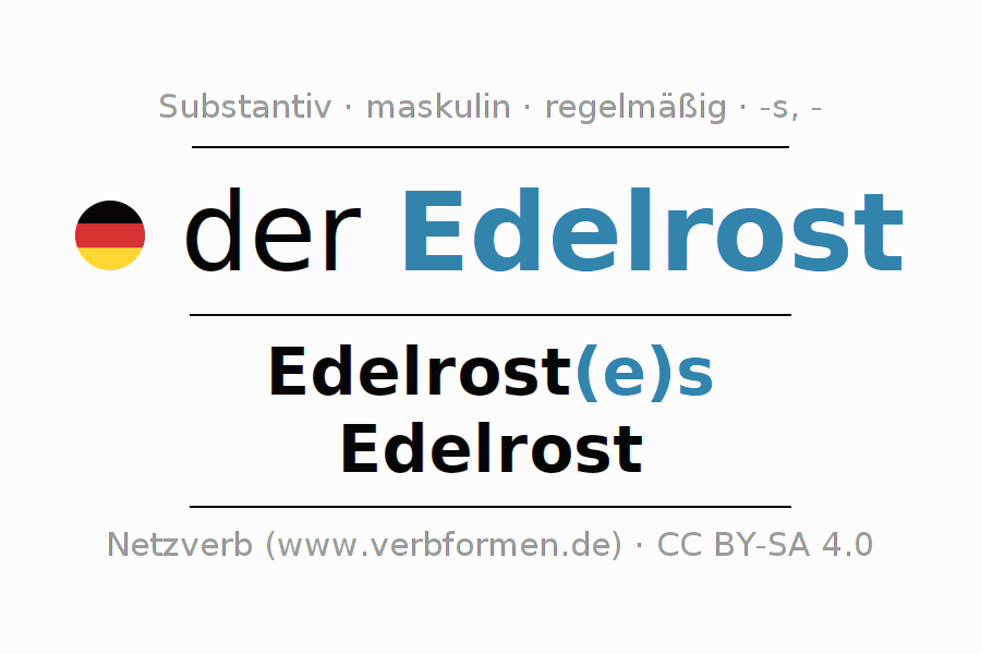 - Plural: die Edelrost, der Edelrost, den Edelrost, die Edelrost