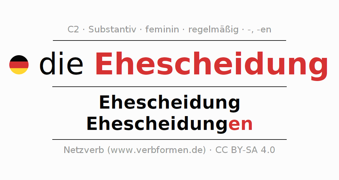 - Singular: die Ehescheidung, der Ehescheidung, der Ehescheidung, die Ehescheidung