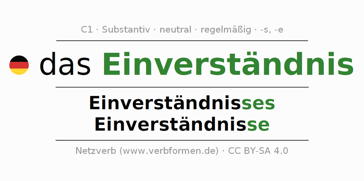 | Nom. | das Einverständnis | die Einverständnisse |