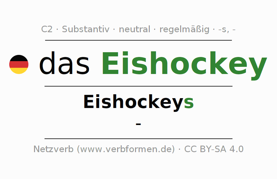 - Singular: das Eishockey, des Eishockeys, dem Eishockey, das Eishockey