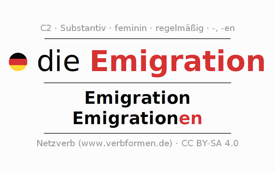 - Singular: die Emigration, der Emigration, der Emigration, die Emigration