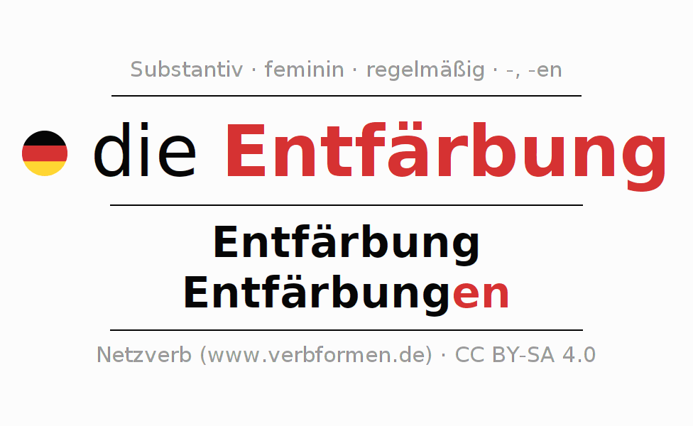 - Singular: die Entfärbung, der Entfärbung, der Entfärbung, die Entfärbung