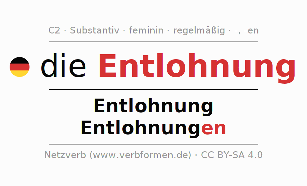 - Singular: die Entlohnung, der Entlohnung, der Entlohnung, die Entlohnung