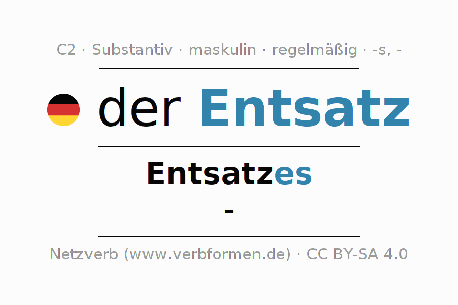 - Singular: der Entsatz, des Entsatzes, dem Entsatz(e), den Entsatz