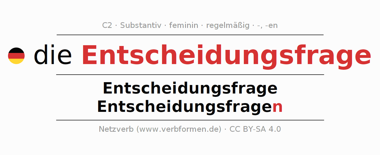 | Nom. | die Entscheidungsfrage | die Entscheidungsfragen |