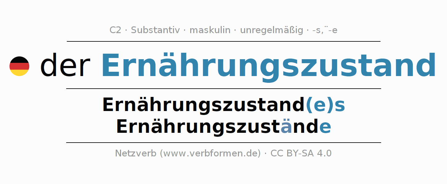 | Nom. | der Ernährungszustand | die Ernährungszustände |
