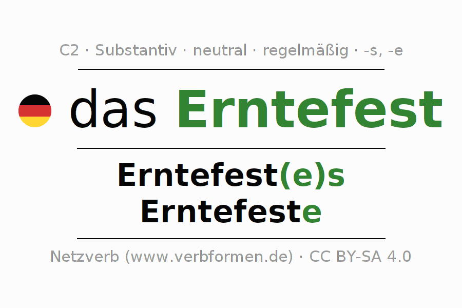 | Akk. | das Erntefest | die Erntefeste |