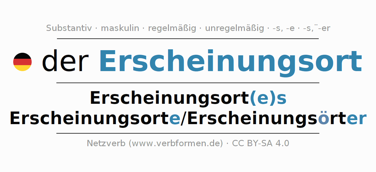 | Akk. | den Erscheinungsort | die Erscheinungsorte/Erscheinungsörter |