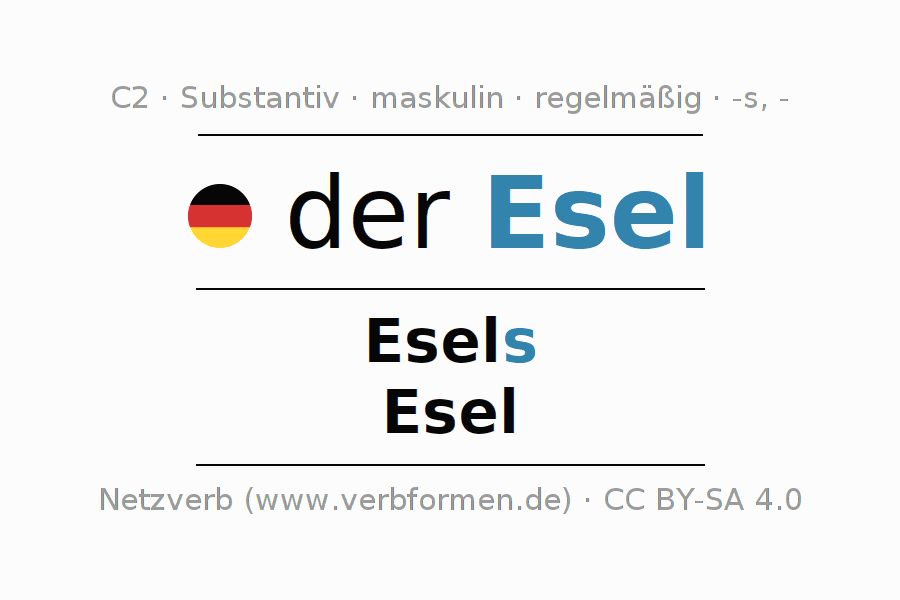- Singular: der Esel, des Esels, dem Esel, den Esel
