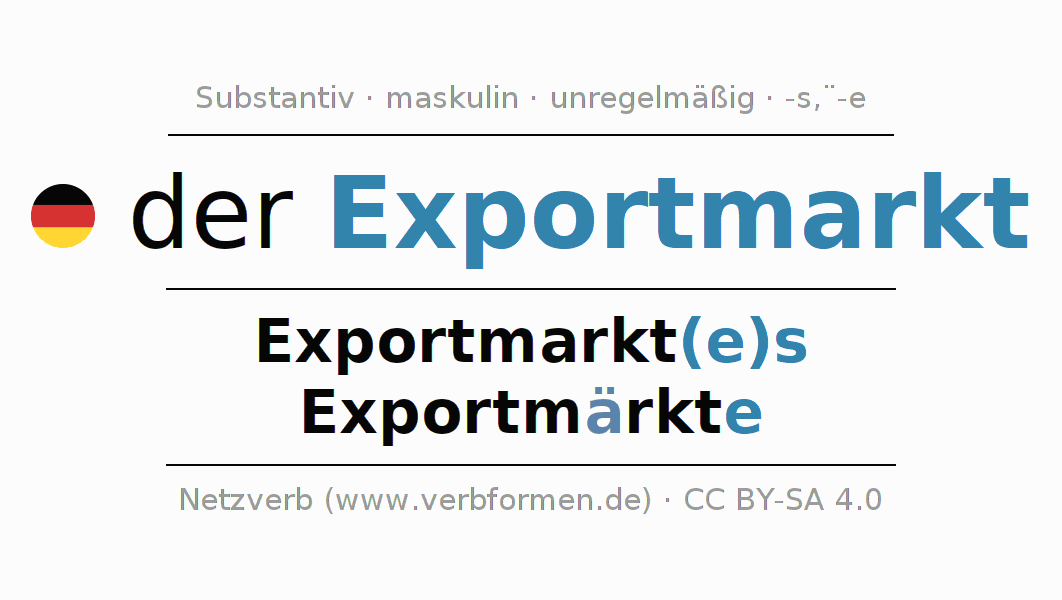 - Plural: die Exportmärkte, der Exportmärkte, den Exportmärkten, die Exportmärkte