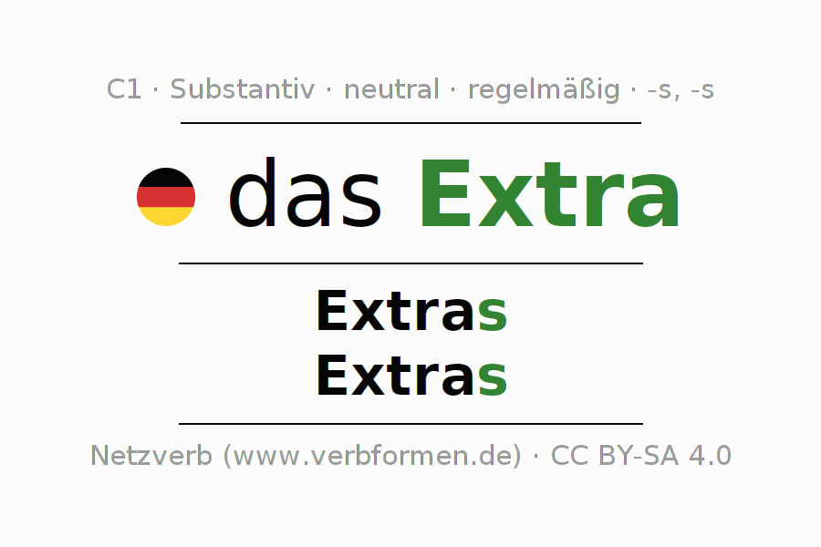 - Plural: die Extras, der Extras, den Extras, die Extras
